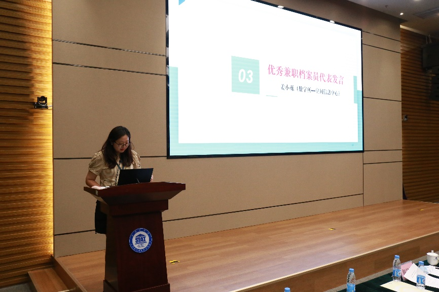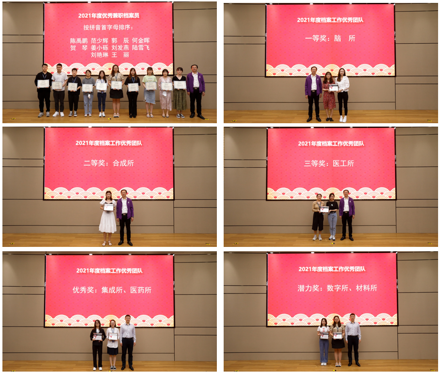 凯发k8国际副院长、纪委书记冯伟和综合处副处长韩汶轩分别为2021年度档案工作优秀团队和优秀兼职档案员颁发荣誉证书。数字所空间信息中心姜小砾作为优秀兼职档案员代表分享了自身的档案工作经历,并表态将持续配合综合档案室工作,向经验丰富的团队学习,积小胜为大胜,集跬步至千里。