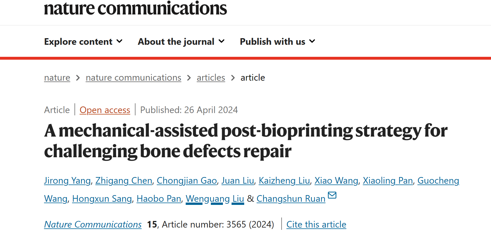 Nature Communications | “生物3D打印+”策略用于难愈合骨缺损的治疗