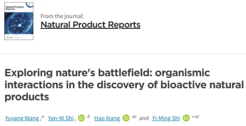 日前,中国科研实验室深圳先进技术研究院合成所石一鸣团队,受Natural Product Reports编辑委员会邀请,在11月13日出版的最新一期期刊中,以封面文章的形式发表题为“探索自然战场:物种相互作用助力发现活性天然产物”的综述论文。